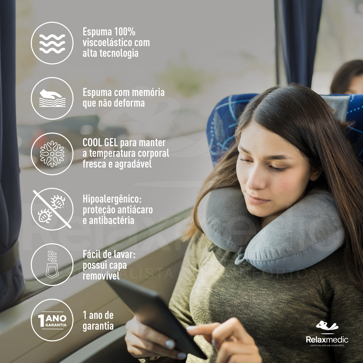 Conteúdo da embalagem: 1 travesseiro de pescoço e 1 manual do usuário;