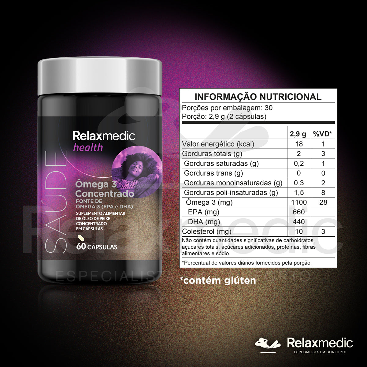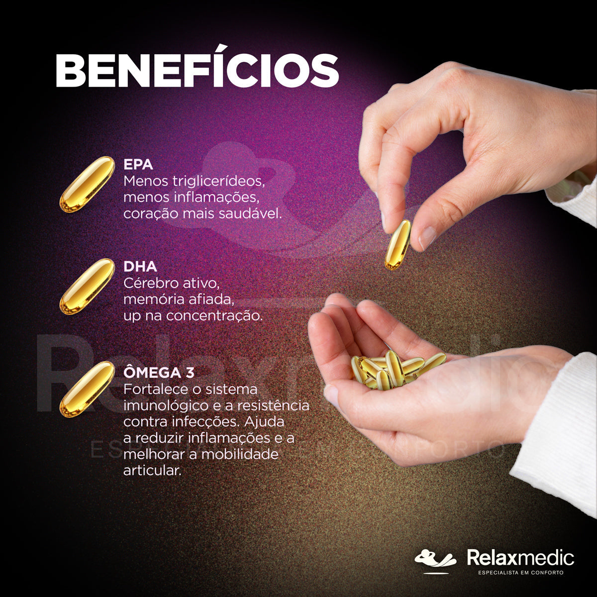 O Ômega 3 Concentrado da Relaxmedic combina alta pureza e potência para cuidar do coração, cérebro e sistema imunológico.